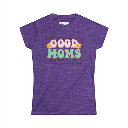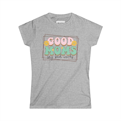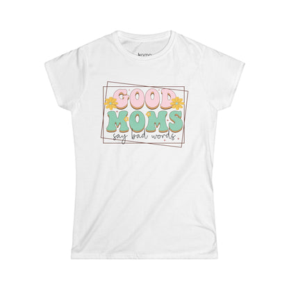 Good Mom Say Bad Words - Women's Tee – Blends artistic expression with modern style. Designed for a feminine, contemporary fit, this soft style tee is perfect for those who appreciate bold, eye-catching fashion without compromising on comfort.